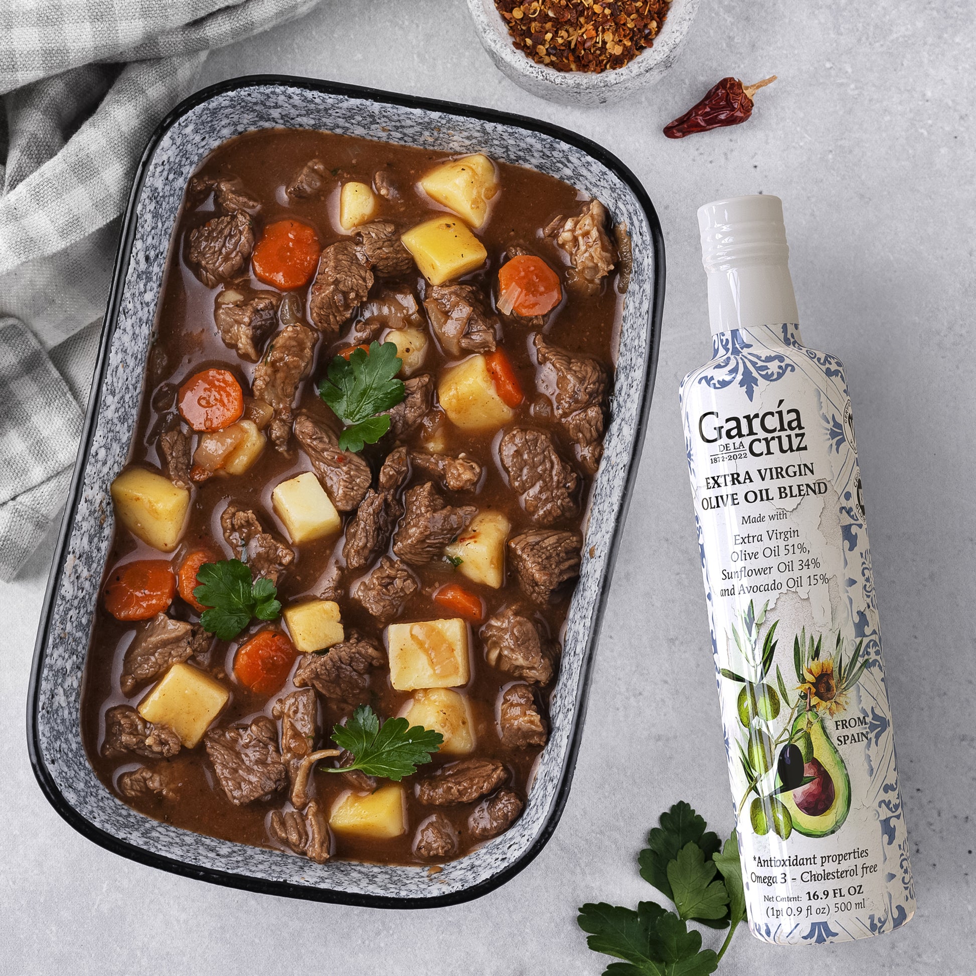 51% Extra Virgin Olive Oil • 34% Sunflower Oil • 15% Avocado Oil