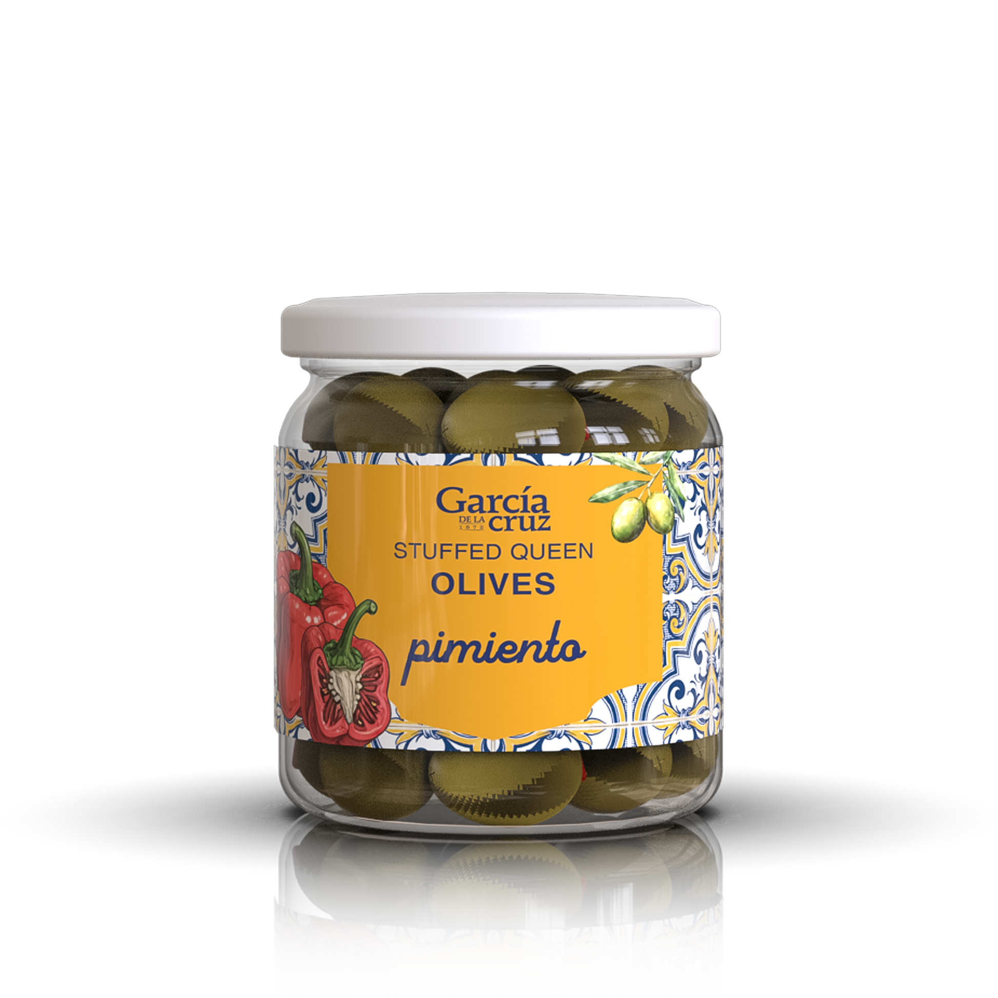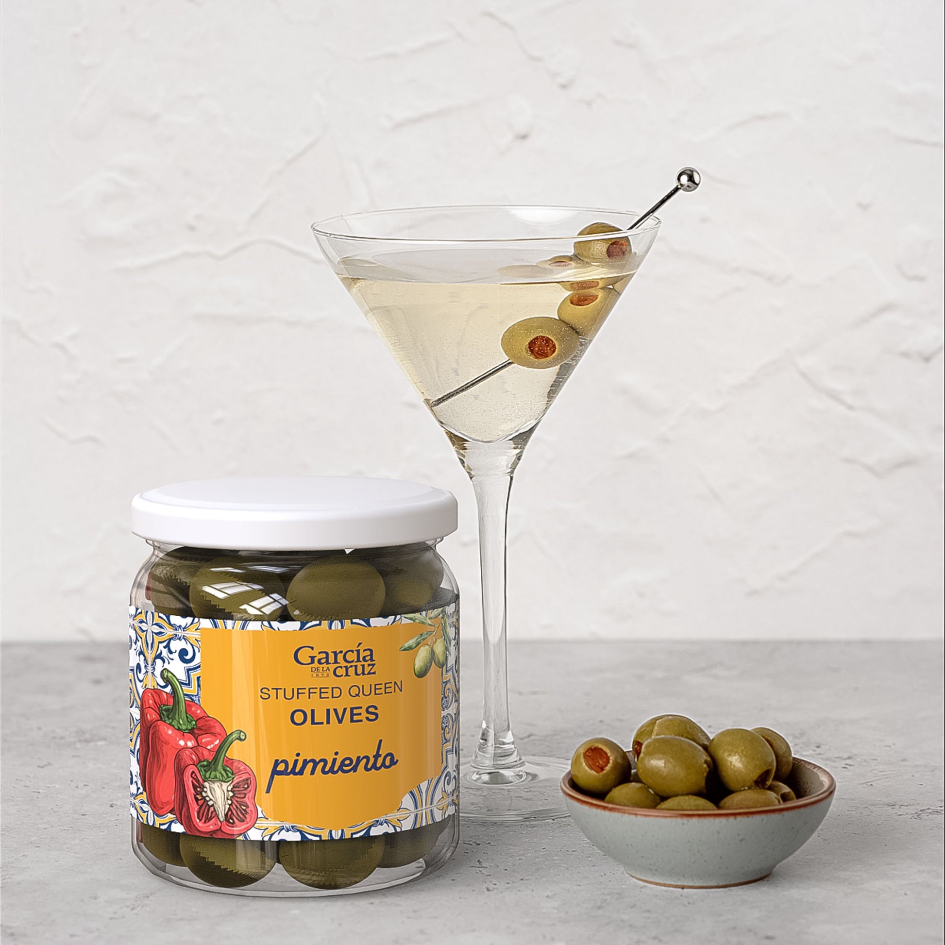 A classic, elevated. Jumbo Gordal olives stuffed with premium red pimiento for the perfect savory-sweet balance.